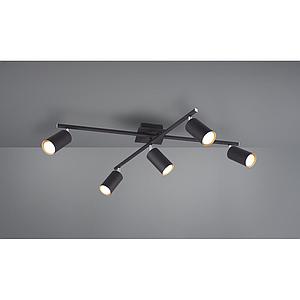 MARLEY PLAFONIERA 2 BARRE ORIENTABILI 5 SPOTS CILINDRO METALLO NERO L. 77,5CM